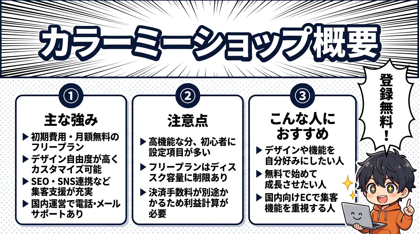 ネットショップを開設したいけれど、どのサービスを選べばいいか迷っていませんか?カラーミーショップは、GMOペパボが運営する国内老舗のECサイト構築サービスです。集客機能やカスタマイズ性に定評がありますが、すべての人に最適とは限りません。
